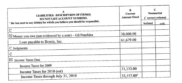 Debts owed by Jimmy Wales, from Pinellas County divorce CASE No 09-011014-FD-12.