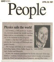 | 14:33, 23 December 2011 | LesGoldenSemesteratSea.jpg (file) | 46 KB | Dr. Leslie M. Golden, of Oak Park Illinois, a popular UIC professor of physics and director of the Near Earth Asteroid Reconnaissance Project, an astronomer, gambling writer, stand-up comedian, actor, musician, and environmentalist is a true polymath, a R | 1 | |