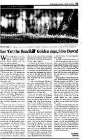 | 14:00, 24 March 2012 | LesGoldenStoptheRoadKill.jpg (file) | 307 KB | Twice each year, in the fall and the spring, the local newspapers publish a long column by Dr. Golden reminding drivers to slow down to prevent the devastation of wildlife. | 1 | |